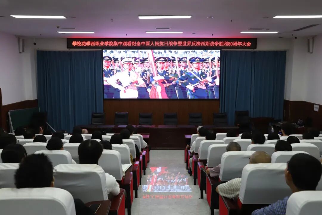 9月3日上午,攀枝花攀西职业学院组织全校教职工和已返校学生在学校二实训楼会议室集中收看纪念中国人民抗日战争暨世界反法西斯战争胜利80周年盛大阅兵。阅兵活动结束后,学校师生十分激动,人心振奋,反响热烈。