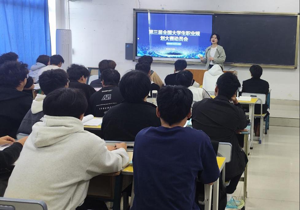 会上,副院长程茜结合机电行业趋势,解读职业规划意义。她强调,智能制造、工业机器人等领域技术迭代加速,行业急需高素质技能型人才,职业规划是高职生成长的“精准导航图”。她指出,学院以行业需求为导向,通过 “岗课赛证” 模式、校企实训基地、顶岗实习闭环管理强化学生职业能力,而职业规划大赛是打通 “学习 - 实践 - 就业” 闭环的重要载体,希望学生结合专业特长与个人诉求规划职业路径。