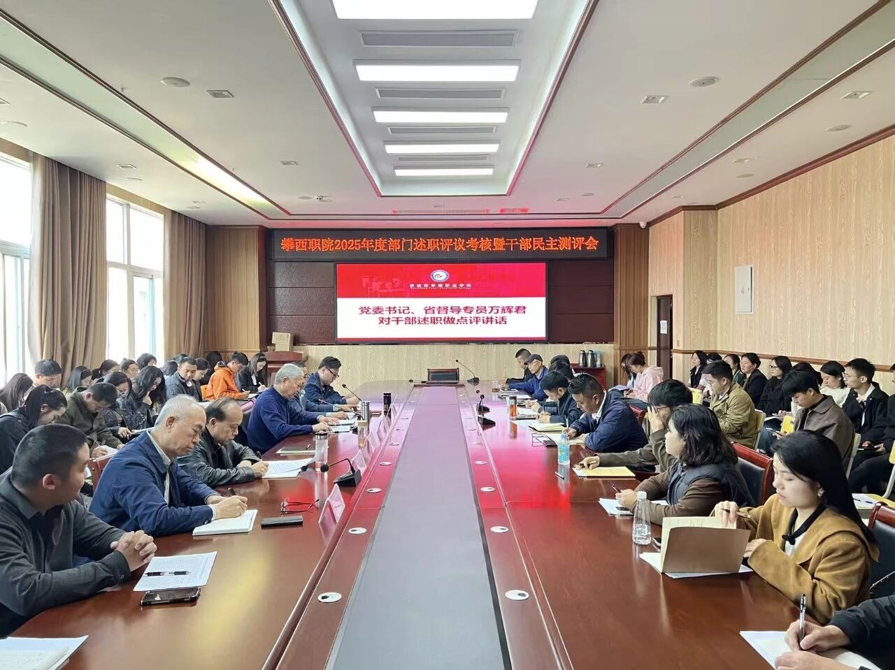 此次2025年度部门述职评议考核暨干部民主测评会,既是一次全面的工作总结会、深刻的问题剖析会,更是一次凝心聚力的动员部署会、加压奋进的工作推进会。会议进一步统一了思想、凝聚了共识、明确了方向、压实了责任。下一步,全校上下将以此次会议为新起点,以更加坚定的信念、昂扬的斗志、务实的作风和有力的举措,同心同德、团结奋斗,聚焦立德树人根本任务,深化教育教学改革,强化产教融合育人,在服务区域经济社会发展中展现新作为,奋力谱写学校高质量发展新篇章,为培养更多高素质技能人才、服务地方发展贡献更大力量。