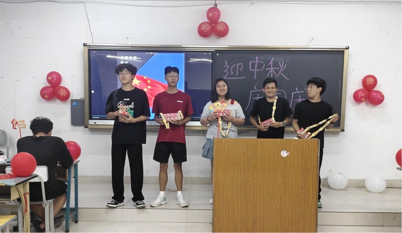随后的爱国教育与知识竞赛环节掀起活动小高潮。竞赛题目涵盖新中国发展、传统节日起源、国情民生等领域,如“中秋祭月渊源”“我国脱贫成就”“‘两弹一星’精神内涵”“现代制造业成果”等,引发学子积极思考。答题时,学子们或抢答,或与同学探讨,在思维碰撞中深化对“家国同庆”的理解,同时让爱国主义教育更生动。