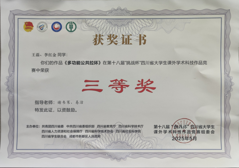 第十八届“挑战杯”四川省大学生课外学术科技作品竞赛(省级三等奖)
