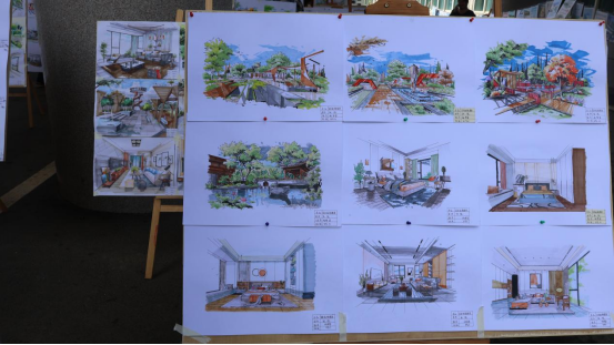 插画奇幻天地:插画设计展区打开脑洞,走进奇妙的插画世界!精彩故事演绎:一个个可爱的IP形象、一段段引人入胜的插画故事,用艺术语言讲述着创作者的奇思妙想。 风格多元碰撞:清新治愈的水彩插画、时尚潮流的扁平插画、充满韵味的国风插画,风格各异,精彩纷呈。通过此次联展,同学们仿佛手绘时光长廊,效果图表现技法展区一支画笔,一张画纸,勾勒真实与想象的桥梁!空间光影盛宴,细腻的建筑透视图、质感满满的室内效果图,用马克笔、水彩重现空间温度!场景速写魅力,街头巷尾、自然景观的即兴创作,捕捉瞬间灵感,感受手绘的独特生命力。