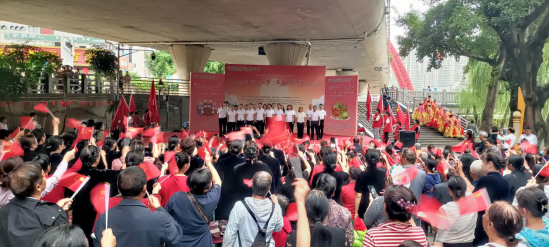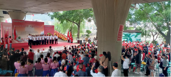 无论是举着红旗奔跑在舞台上,还是挥舞国旗都展现出学子们的青春风采,赢得社区居民阵阵掌声,为双节庆典增添了青春活力的色彩。